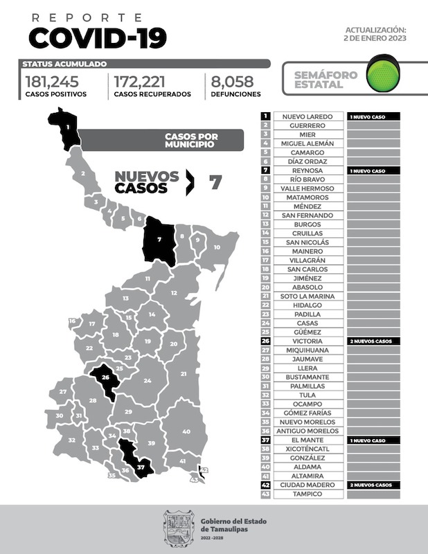 A la baja casos de Covid en Tamaulipas; reportan solo 7 enfermos