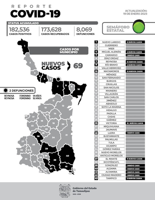 Confirman dos muertos por Covid en Reynosa y 69 nuevos casos