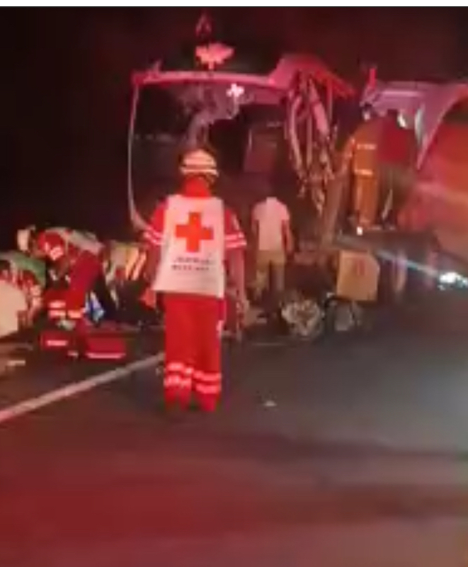 Reportan una perdona muerta y 15 heridos por choque de autobús con tráiler en Tamaulipas, la carretera Victoria-Zaragoza tramo Soto la Marina-Matamoros kilometro 68 se encuentra cerrado a la circulación.