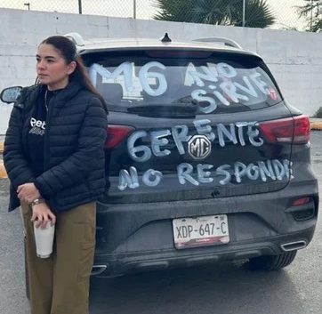 Paga 500 mil pesos por auto MG que sale defectuoso; agencia no responde y pueblo de Reynosa se une a la joven