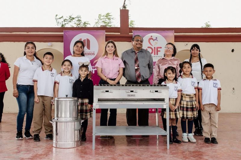 Entrega DIF Matamoros en coordinación con DIF Tamaulipas equipamiento de cocina a la Primaria Edelmira Charles de la Col. México