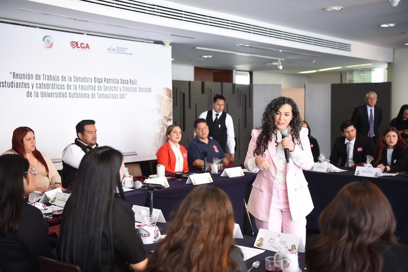 Estudiantes de la carrera de licenciado en derecho pertenecientes a la Universidad Autónoma de Tamaulipas, fueron recibidos en el Senado de la República por la senadora Olga Patricia Sosa Ruíz, en un ejercicio para conocer los procesos parlamentarios y el trabajo legislativo que se realiza en la cámara alta.