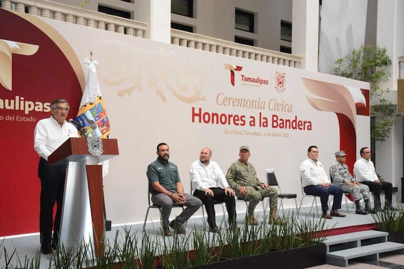 -Encabeza gobernador Américo Villarreal ceremonia de honores a la bandera en Palacio de Gobierno