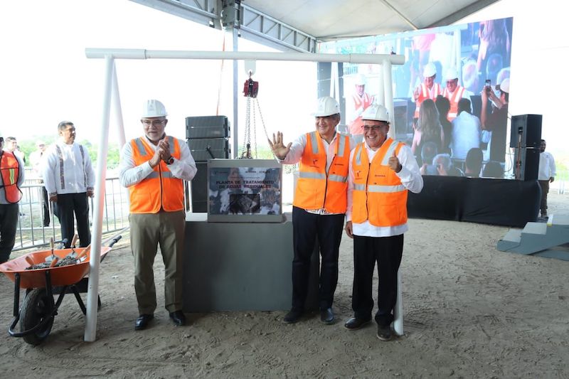 El gobernador Américo Villarreal Anaya, pone la primera piedra de la Planta Tratadora de Aguas Residuales (PTAR) «La Pedrera», en el municipio de Altamira Tamaulipas que costará más de 500 mdp.