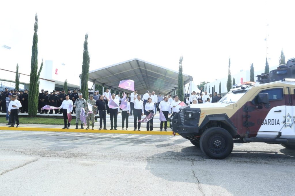 Américo Villarreal entrega vehículos blindados a la Guardia Estatal para fortalecer tareas de vigilancia luego de ceremonia cívica