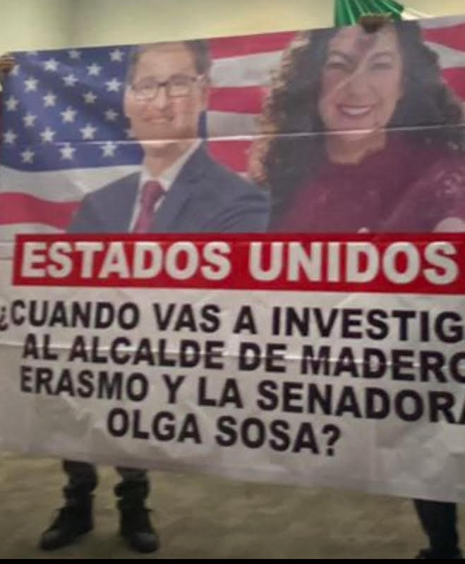 Con pancartas y consignas, exigieron que se investigue a la legisladora y al alcalde de Madero, Erasmo González Robledo, por presuntos nexos con el “huachicol fiscal”.