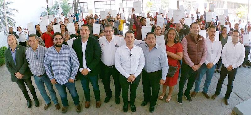 Un total de 110 familias recibieron el documento jurídico avalado por el Director General del Instituto Registral y Catastral del Estado Armando de la Cruz Alcántar y del representante regional del Instituto Nacional de Suelo Sustentable Yeraldo Emanuel Torres Flores.
