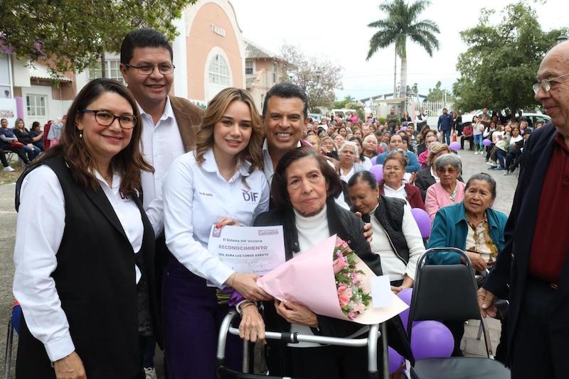 Al presidir la entrega de equipamiento a Centros de Asistenciales, la presidenta del Sistema DIF Municipal, Lucy de Gattás y el alcalde de Victoria, Eduardo Gattás Báez, refrendaron el compromiso de continuar impulsando y desarrollando programas para mejorar el bienestar de las familias victorenses.
