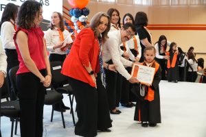 El evento, celebrado en el Gimnasio Multidisciplinario Victoria, incluyó el acto protocolario de honores a la Bandera Nacional, presentaciones artísticas y mensajes de despedida en español e inglés a cargo de los infantes.