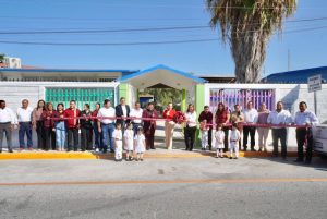 Posteriormente, Canturosas Villarreal entregó en el Jardín de Niños “Lic. Luis Donaldo Colosio Murrieta”, la construcción de una barda perimetral, con una inversión de 711 mil 246 pesos y una superficie de 72.80 metros lineales.