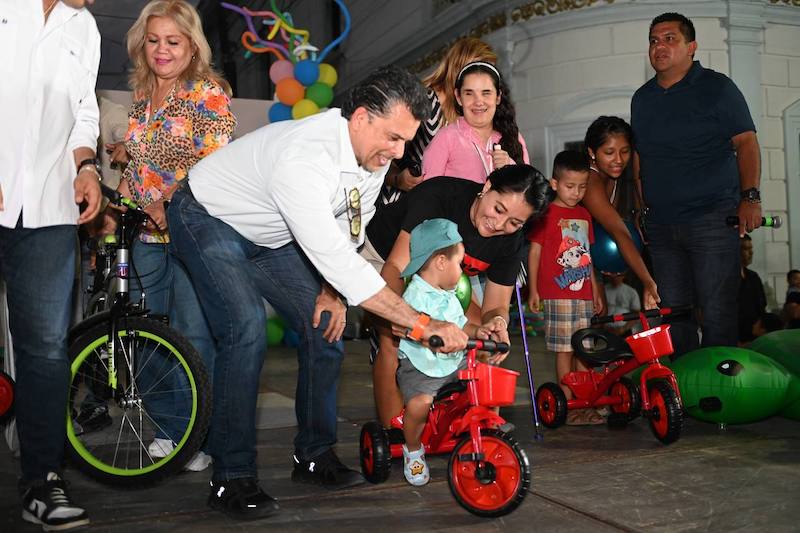 La sonrisa y alegría de niñas y niños se avivo con el obsequio de juguetes, rifa sobrepasa de bicicletas y reparto de refrigerio entre las familias que asistieron al evento organizado con apoyo de la Secretaría de Bienestar Social del Municipio.